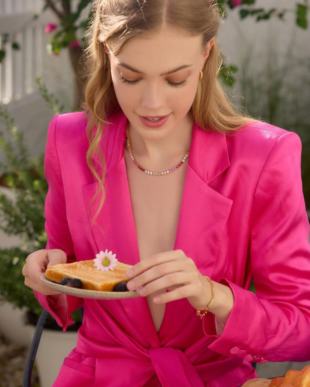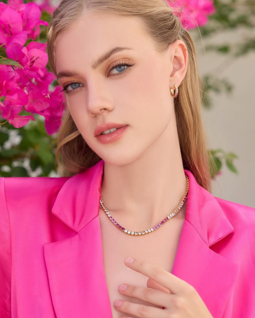 The Luxe Tyra Pink Ombre Choker shines with gradient crystals in dreamy pink hues. It’s soft, romantic, and effortlessly stylish. A beautiful pop of color for any look.