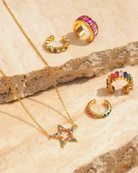 Luxe Tyra Pink Ombre Crystal Gold Ear Cuff