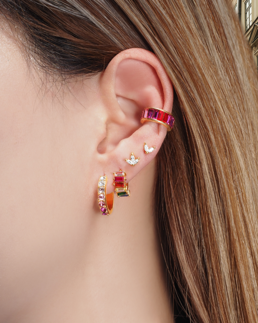Blush with brilliance in these ombré pink crystal hoops, designed to fade beautifully from soft tones to bold sparkle for a playful, modern look.
