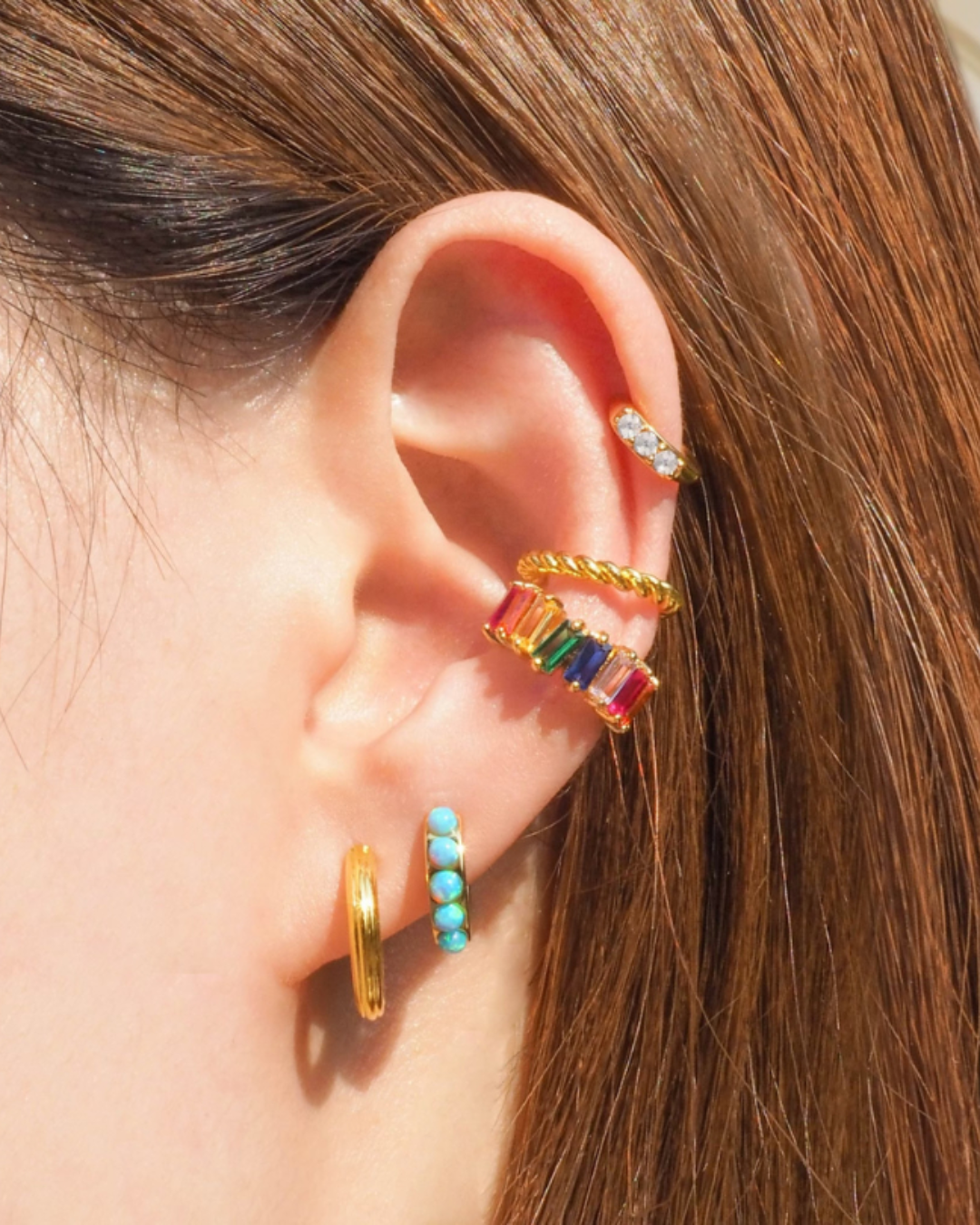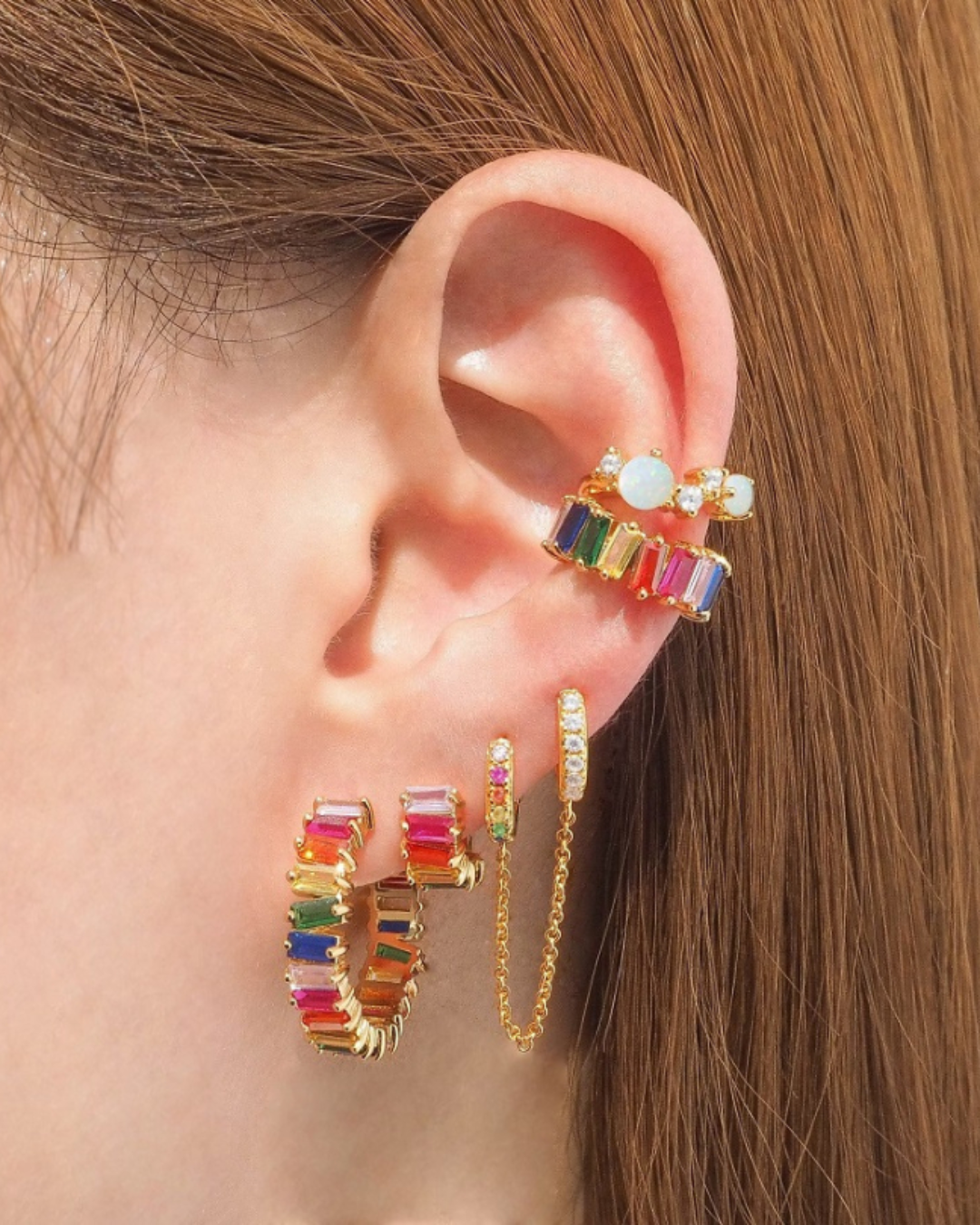 Luxe Tyra Rainbow Crystal Baguette Gold Ear Cuff