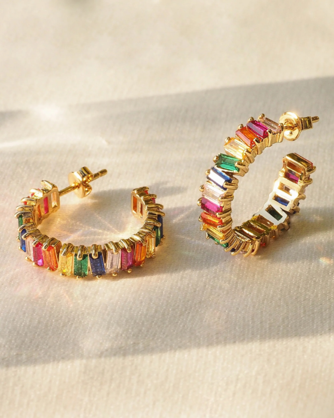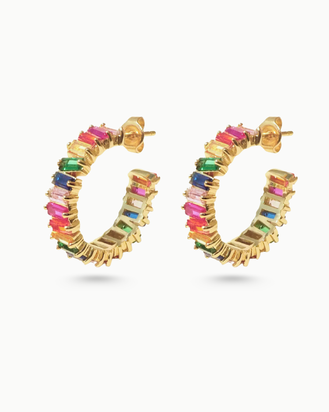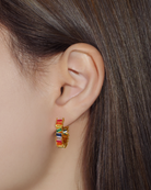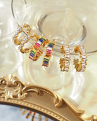 Luxe Tyra Rainbow Crystal Baguette Gold Hoop Stud Earrings