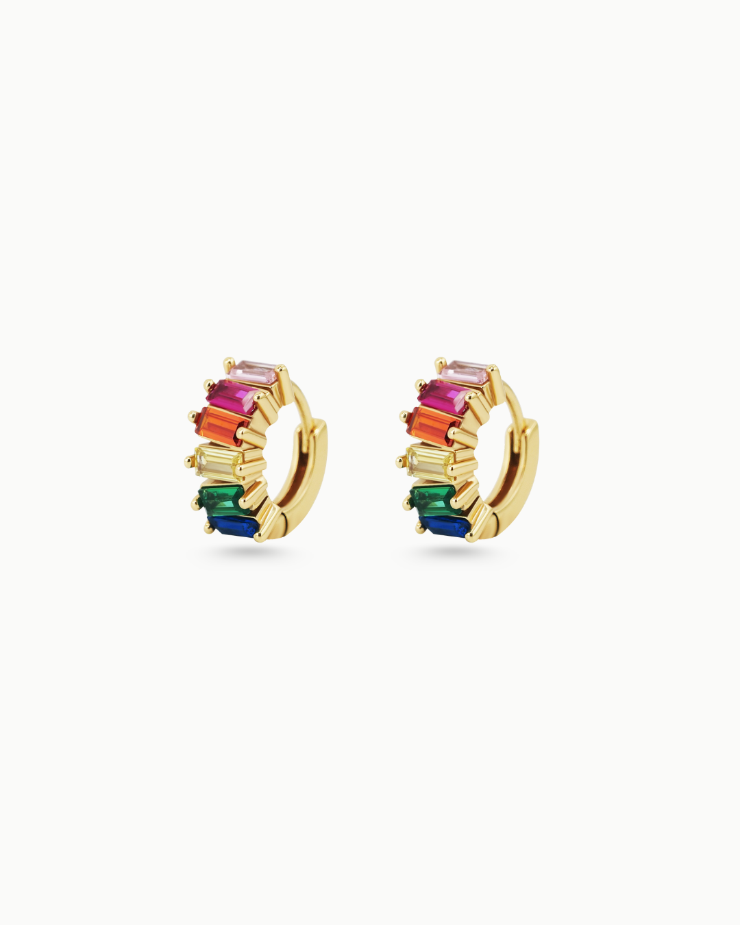 Luxe Tyra Rainbow Crystal Baguette Gold Huggie Hoop Earrings