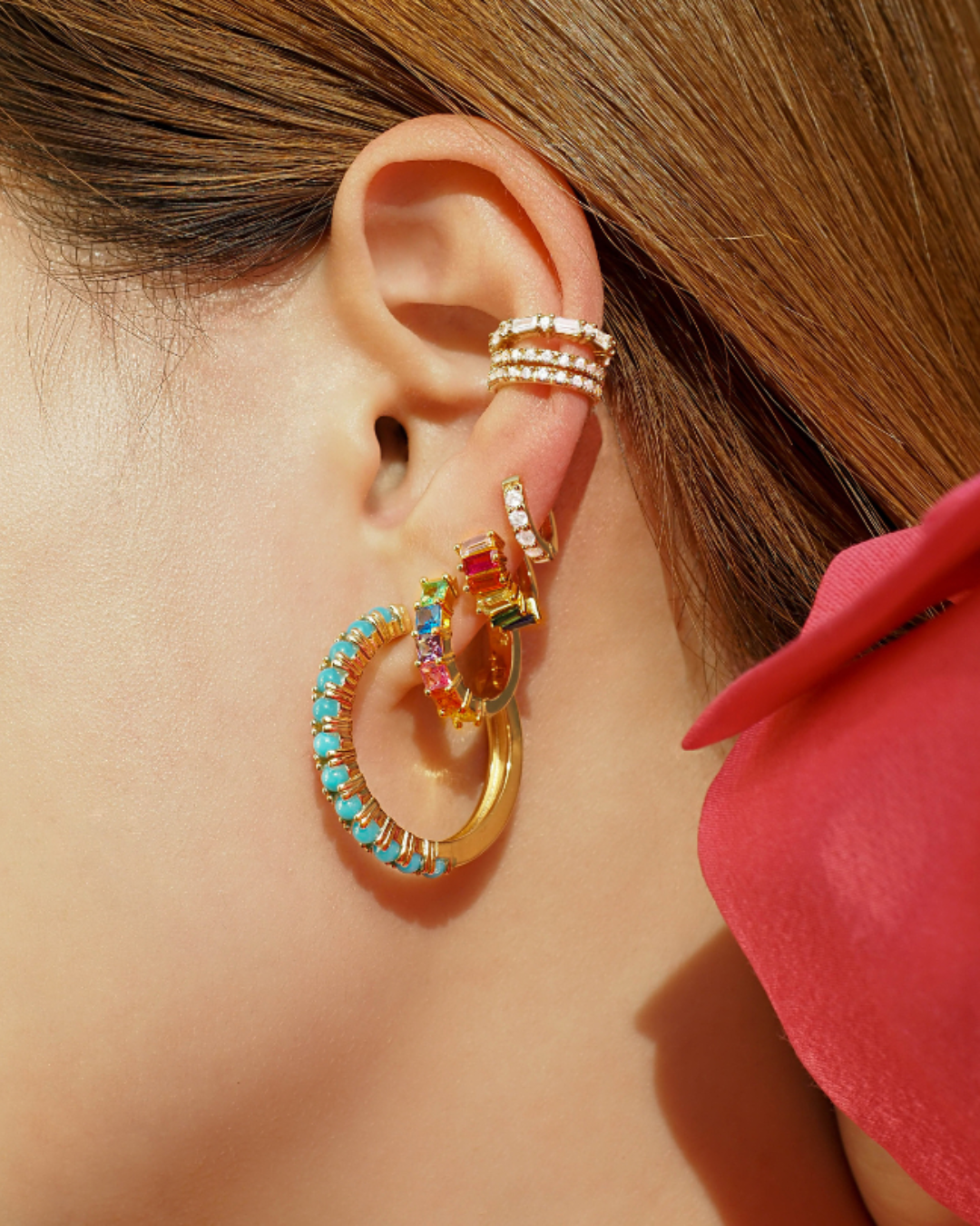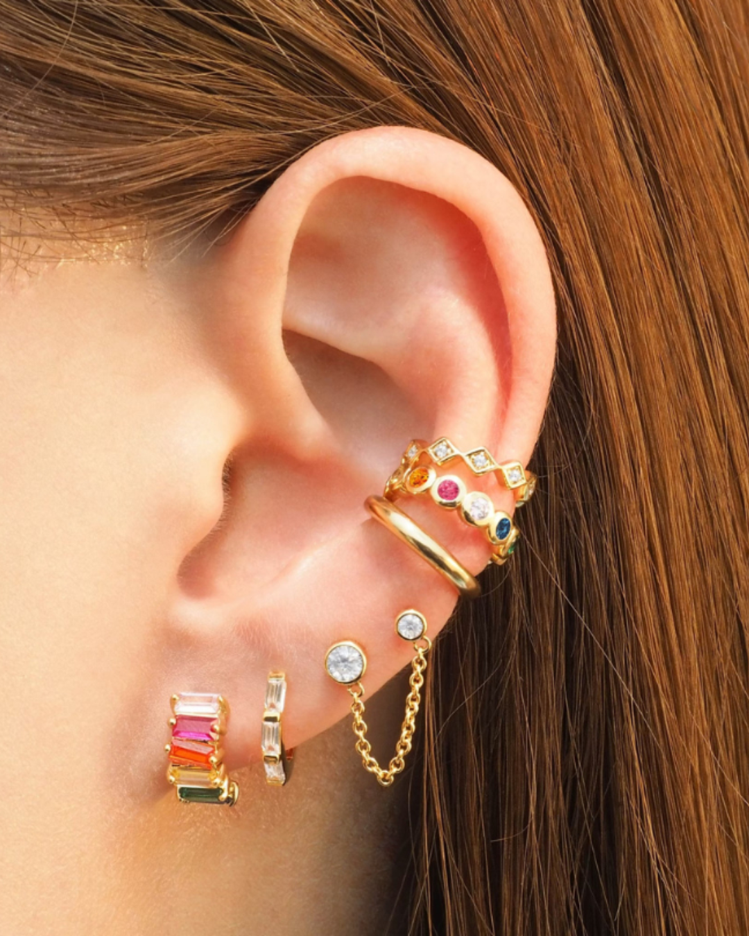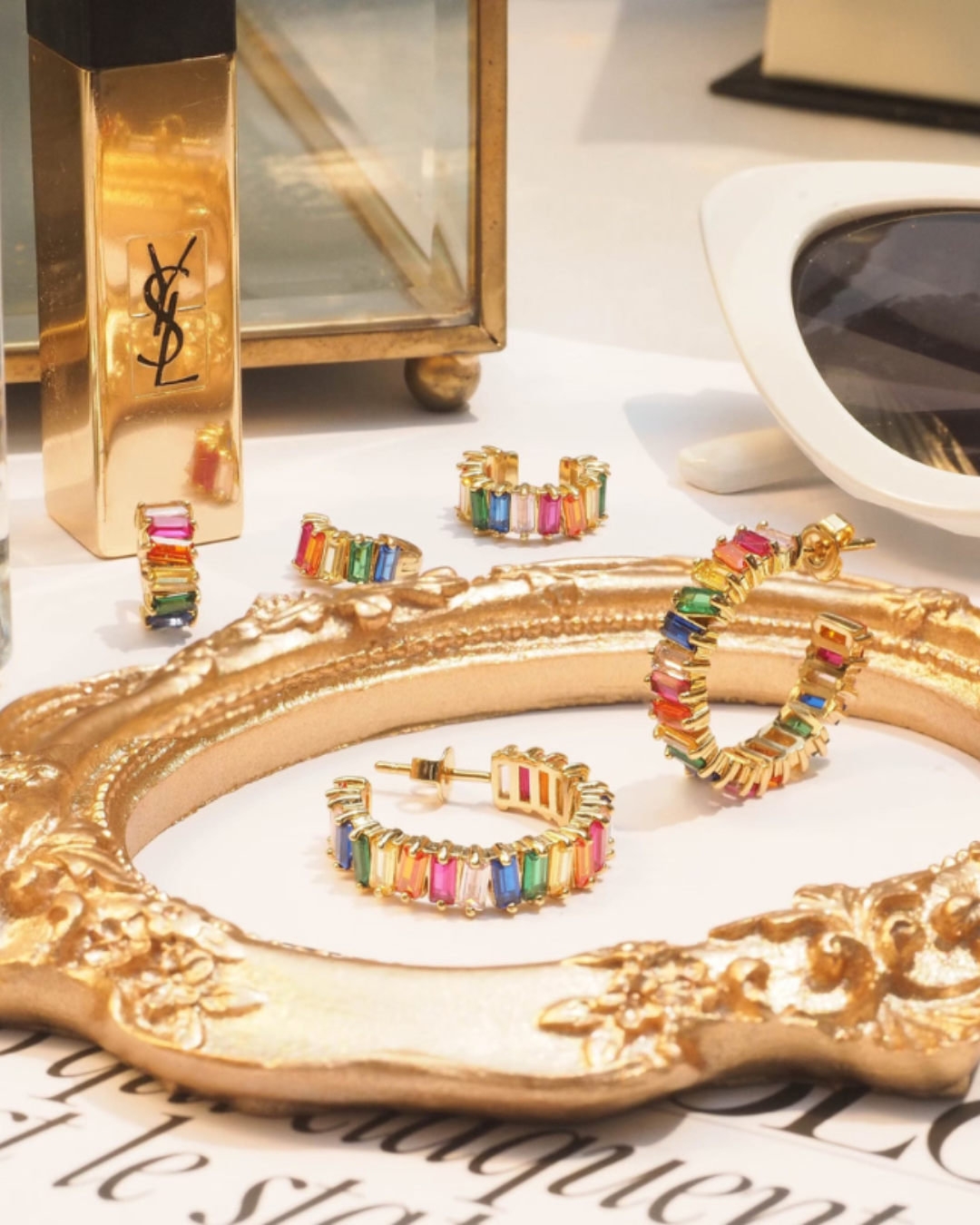 Vibrant and bold, these Tyra huggies shine with rainbow crystals, designed to uplift your look with a pop of personality.