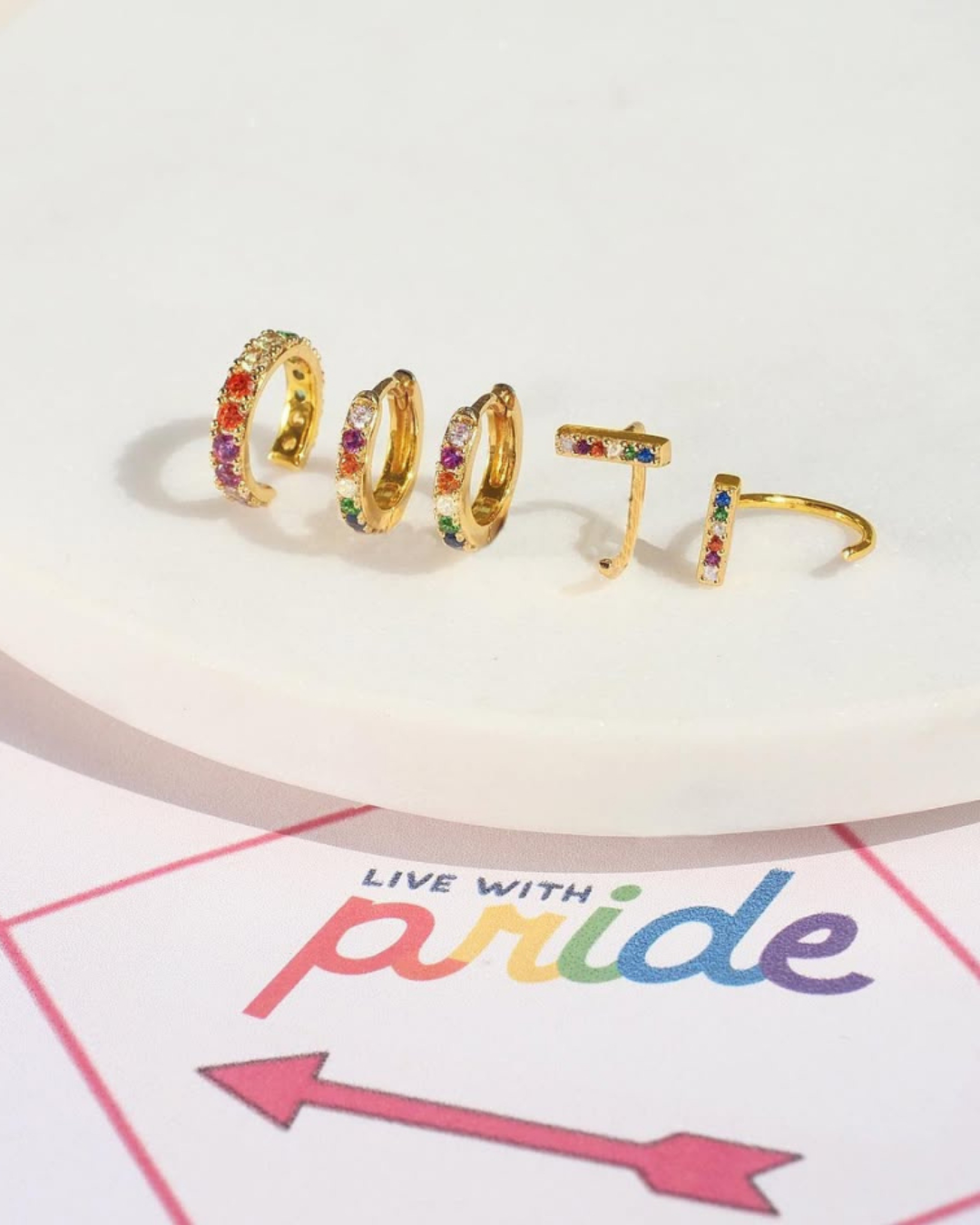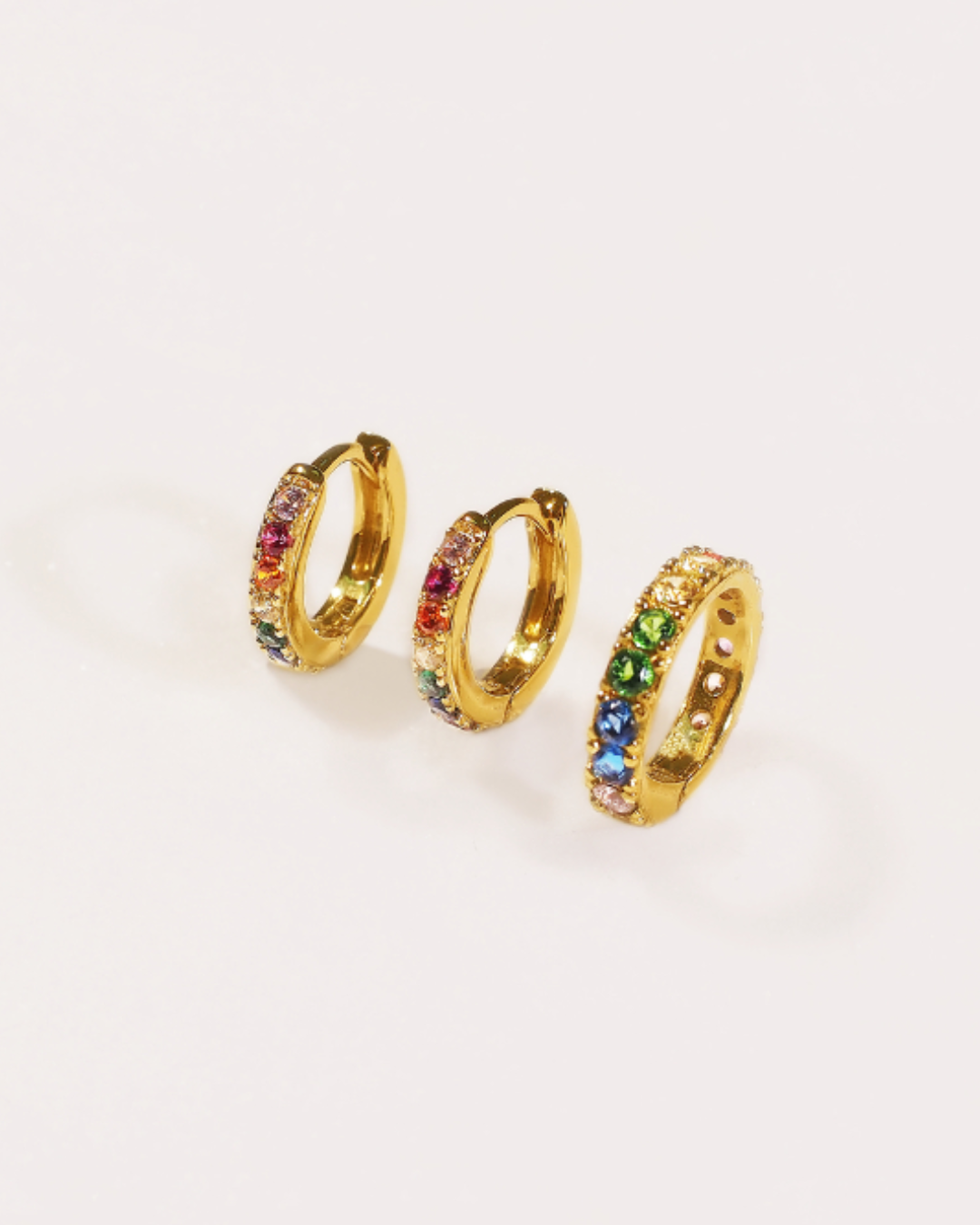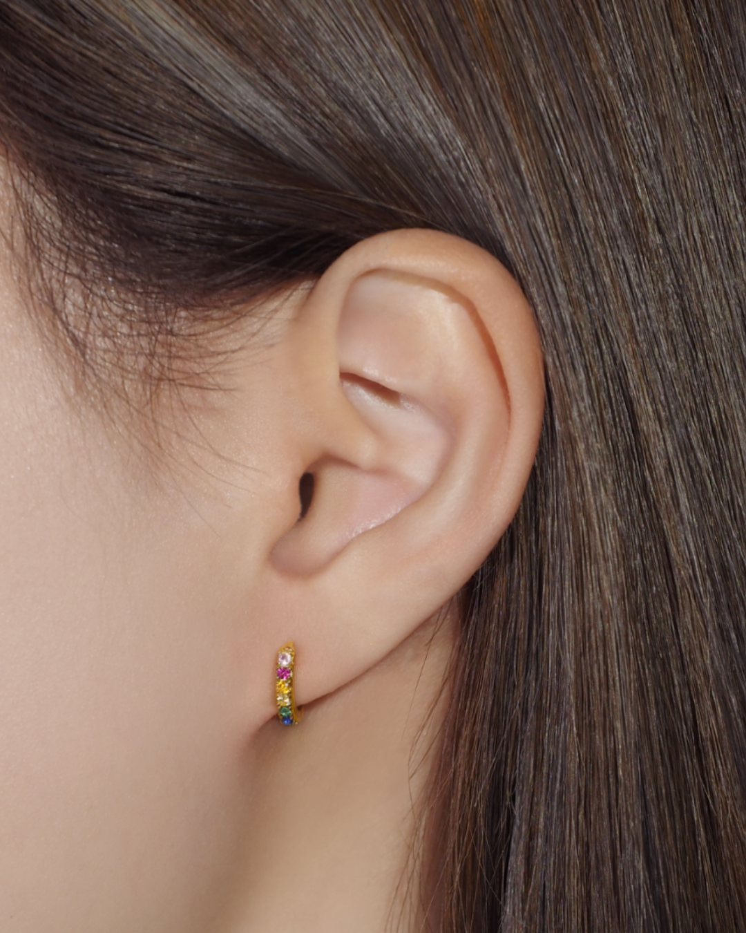 Infused with playful energy, these rainbow crystal huggies bring vibrant color and uplifting sparkle to every outfit.