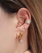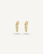 Crafted with a fluid wave-like shape and lined with sparkling crystals, these hoops bring a graceful twist to your jewelry collection.