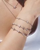 Inspired by cosmic brilliance, the Nova Crystal Bangle features radiant crystals on a sleek curved band. A subtle nod to your inner light, it layers seamlessly with your favorite celestial pieces.