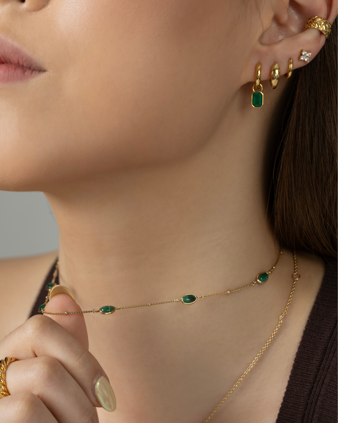 Stone Magic Royale Green Agate Gold Charm Huggie Hoop Earring