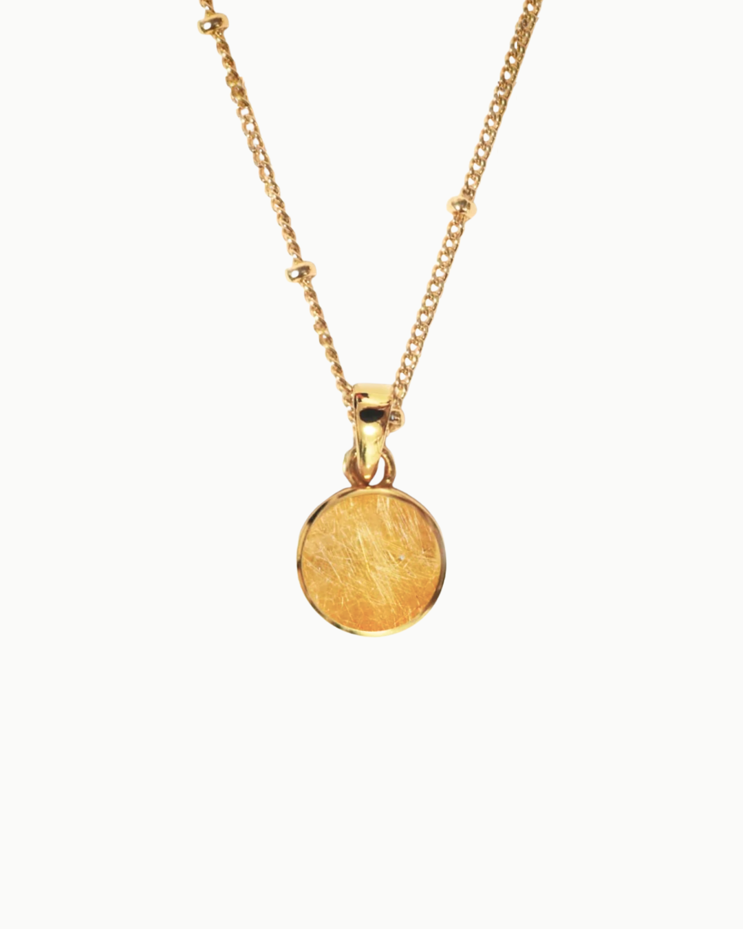 Stone Magic Sphere Golden Rutilated Quartz Gold Charm Necklace