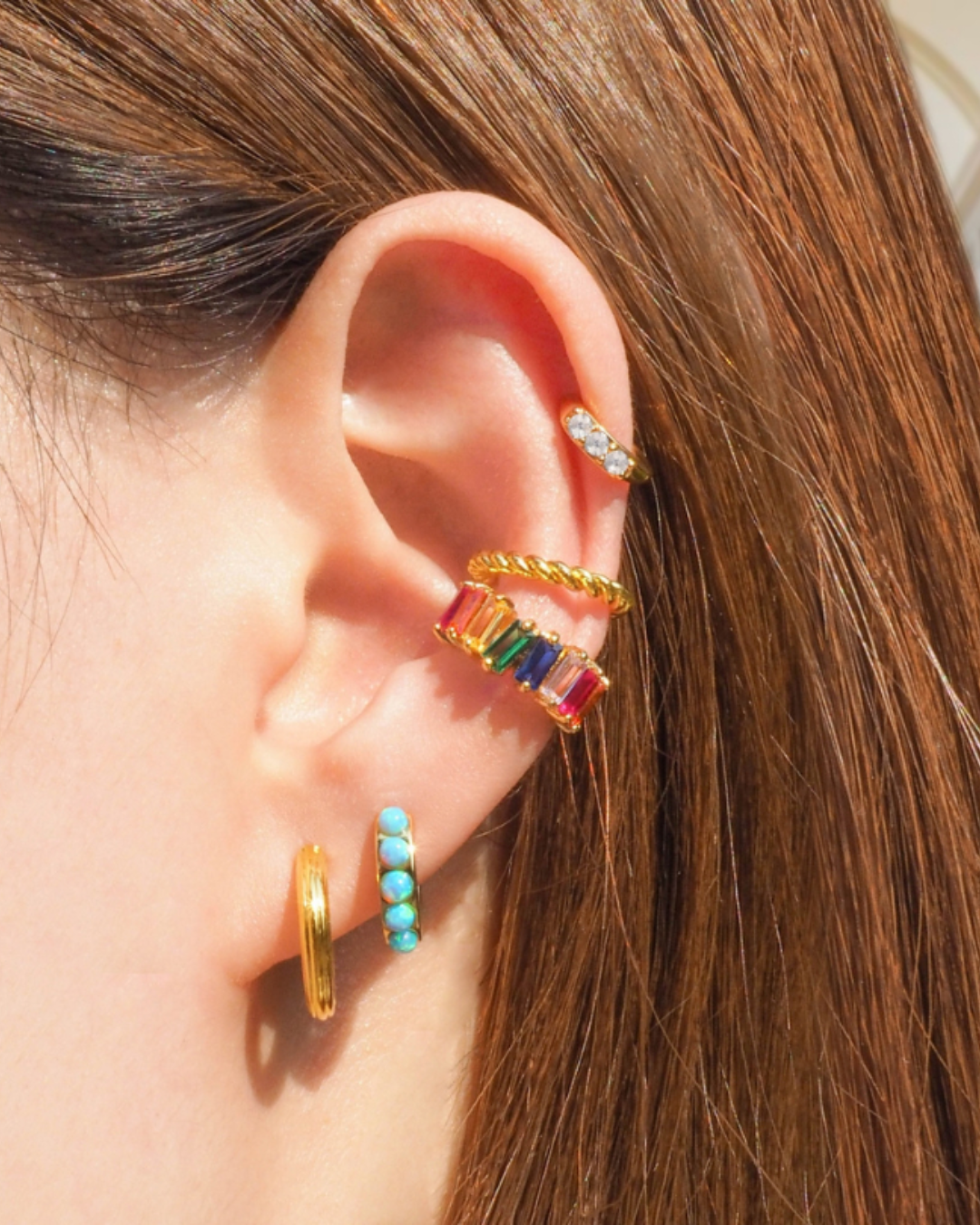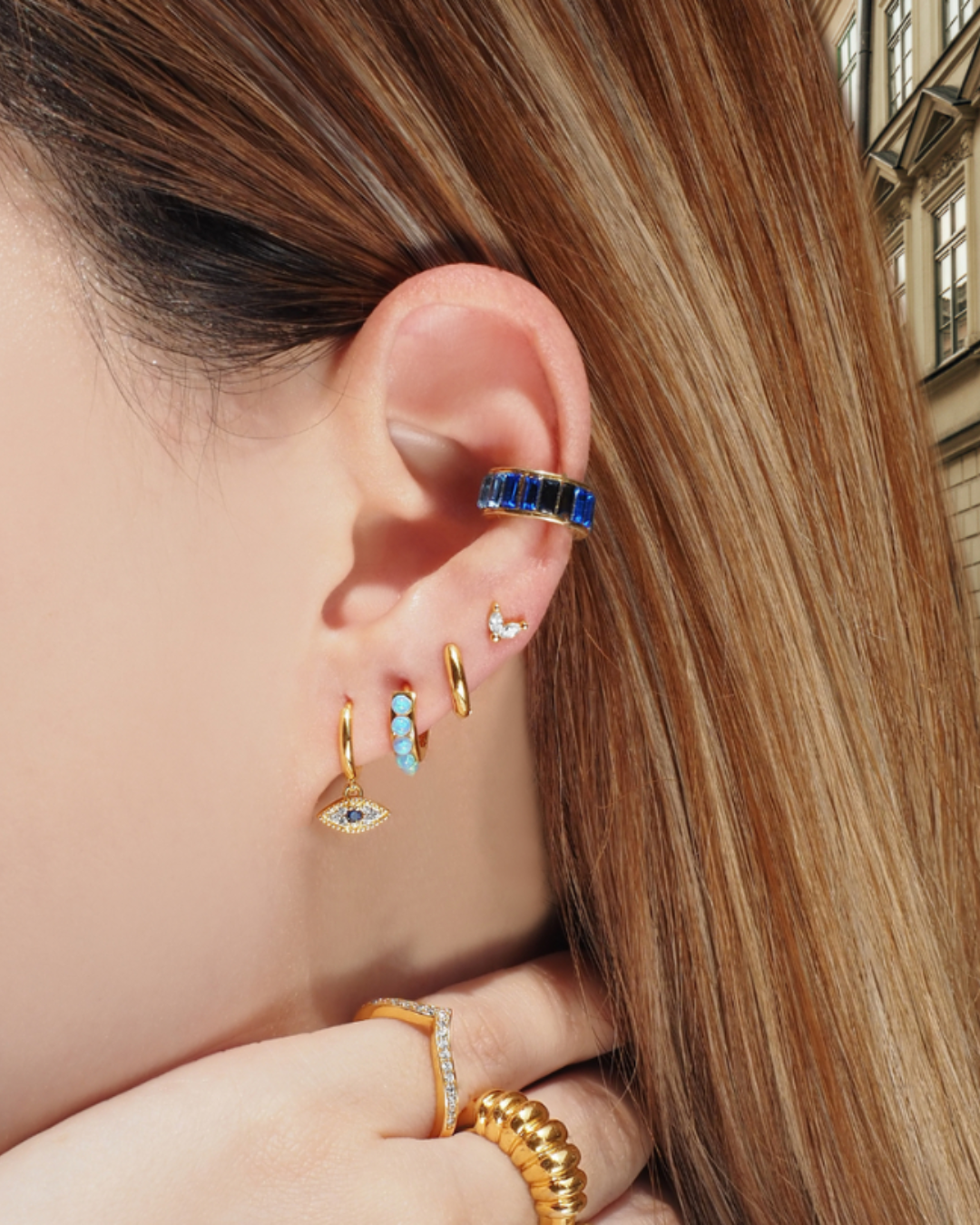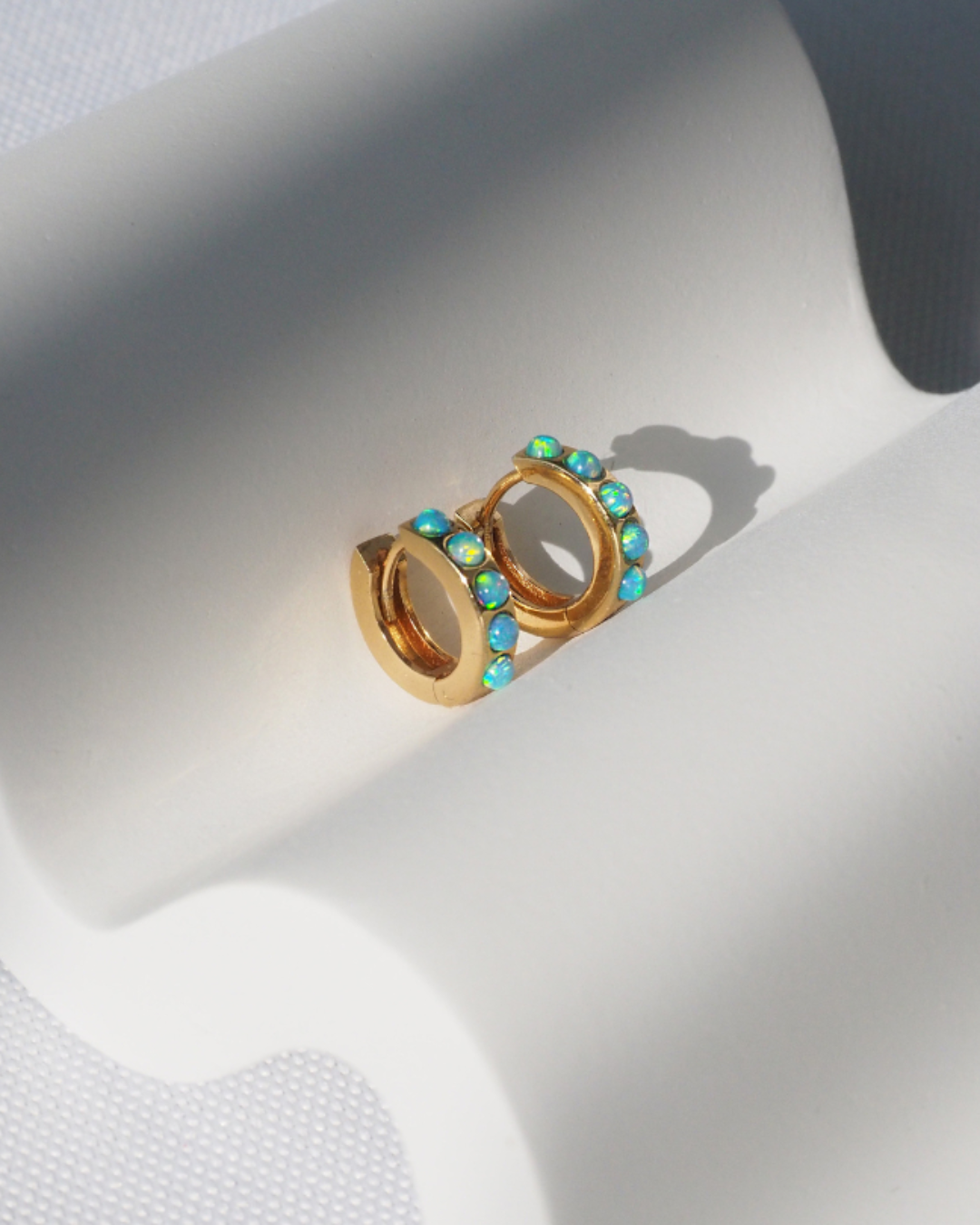 Summer Vibe Ocean Blue Opal Gold Huggie Hoop Earrings
