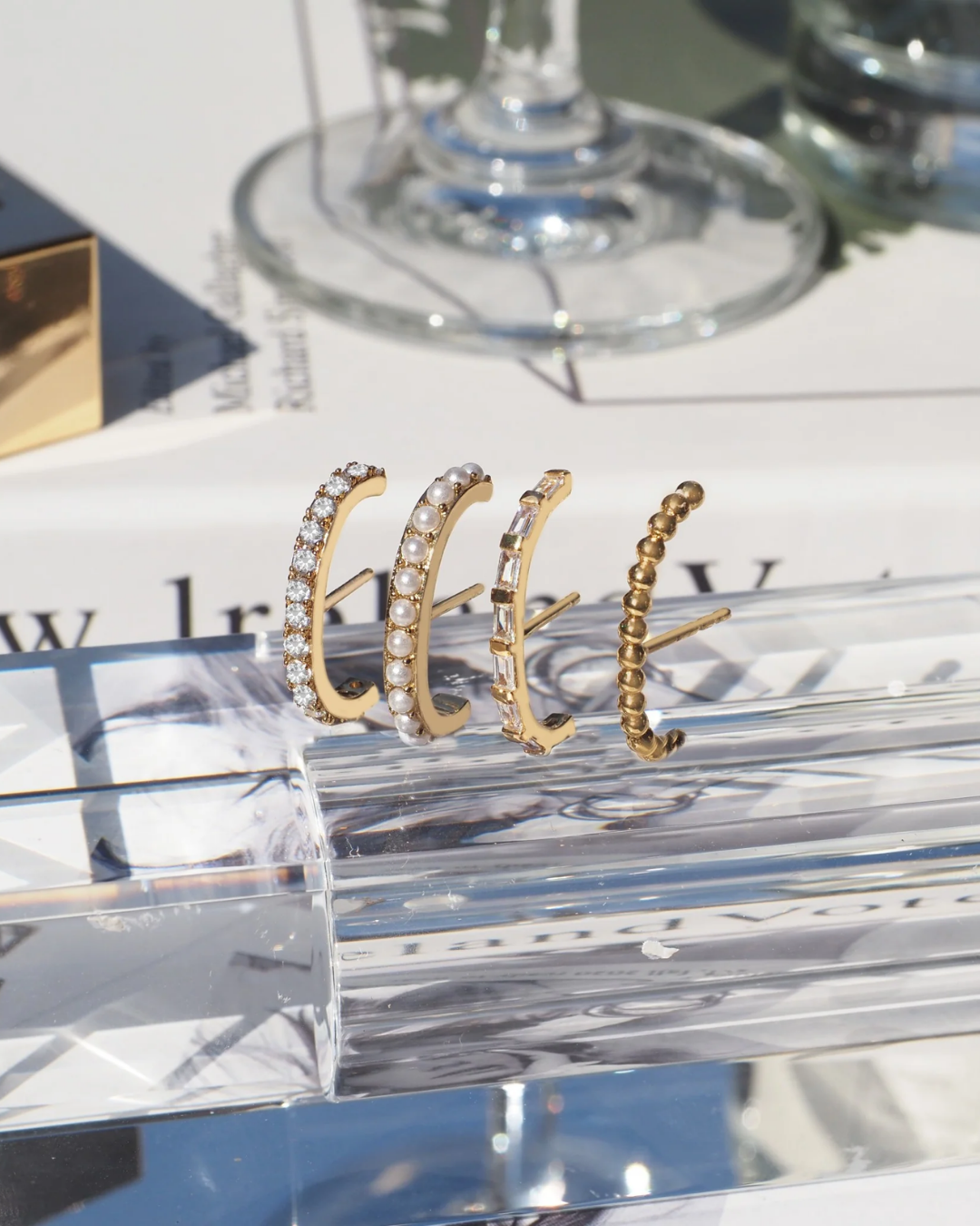 A sleek everyday essential, these minimal stud earrings are designed with a softly suspended bar that adds a modern twist to your look while keeping things effortlessly chic.