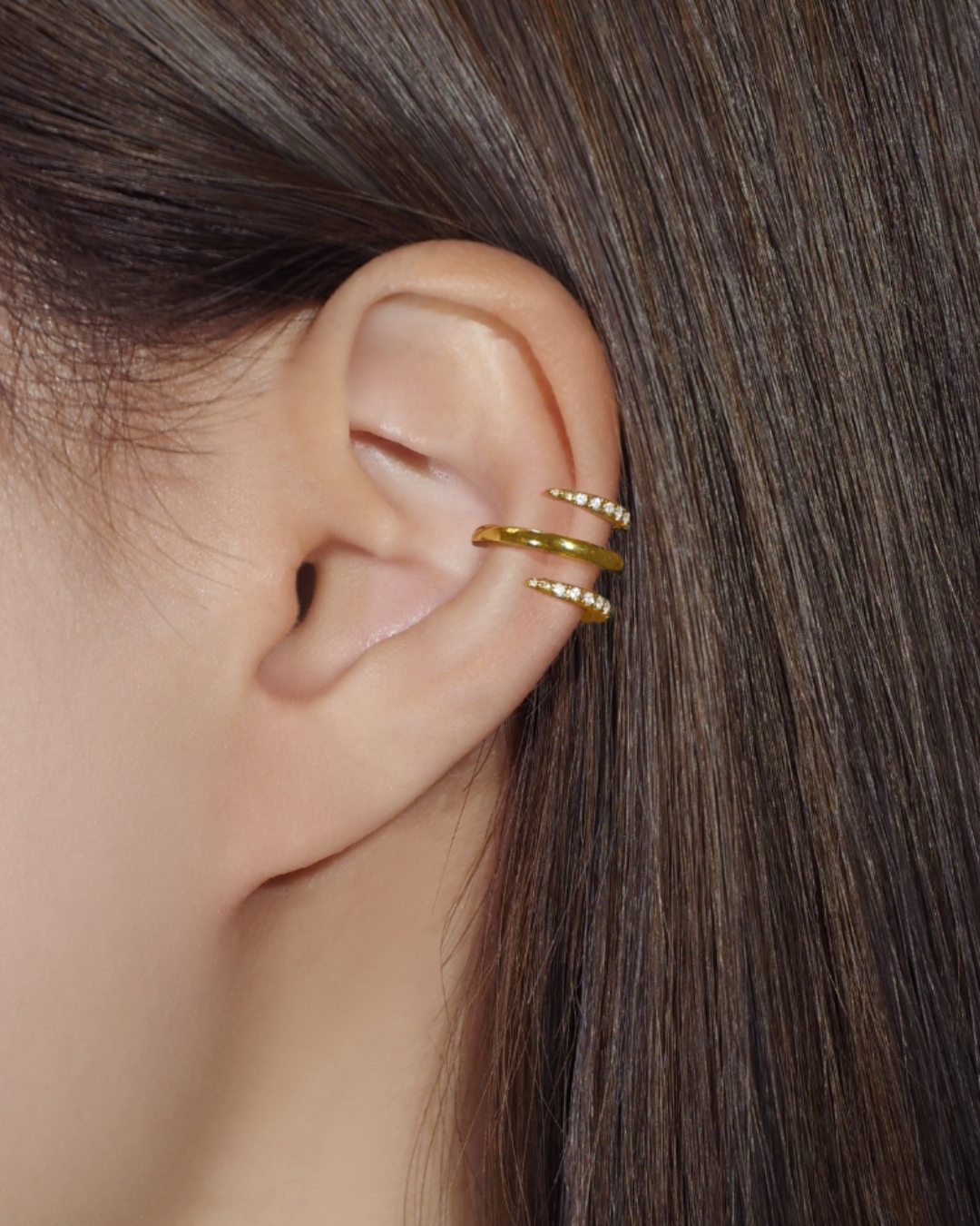 A bold statement for your stack, this triple-bar design glimmers on one side with pave crystals while keeping it minimal on the other.