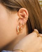 Triple Bar Half Crystal Gold Ear Cuff