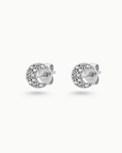 This crescent moon crystal stud brings lunar elegance to life, with a sleek curve of glistening stones that reflect serenity and strength in every glance.