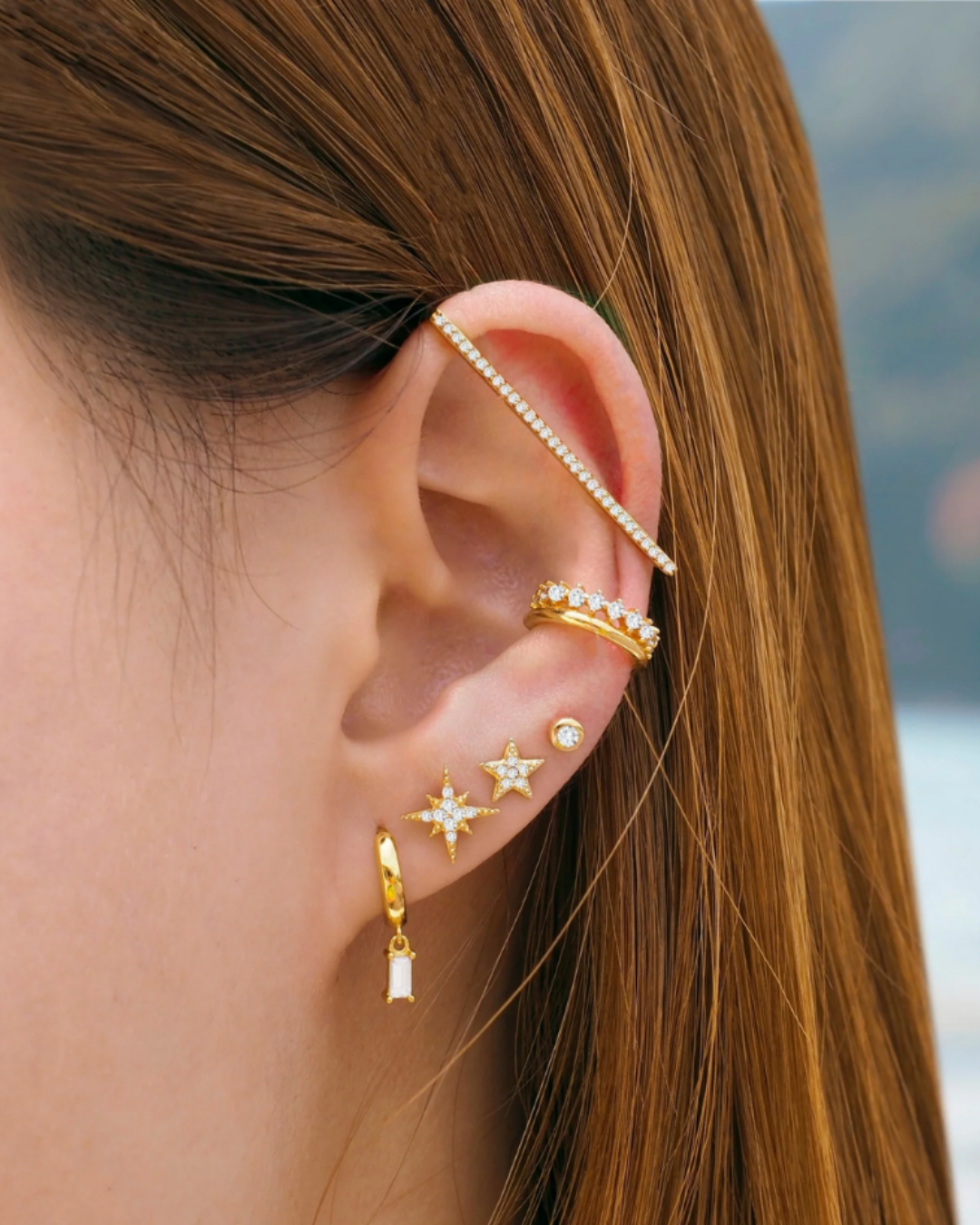 A delicate symbol of starlit elegance, this mini star stud sparkles with refined crystal detail, perfect for adding a subtle touch of magic to your everyday look.