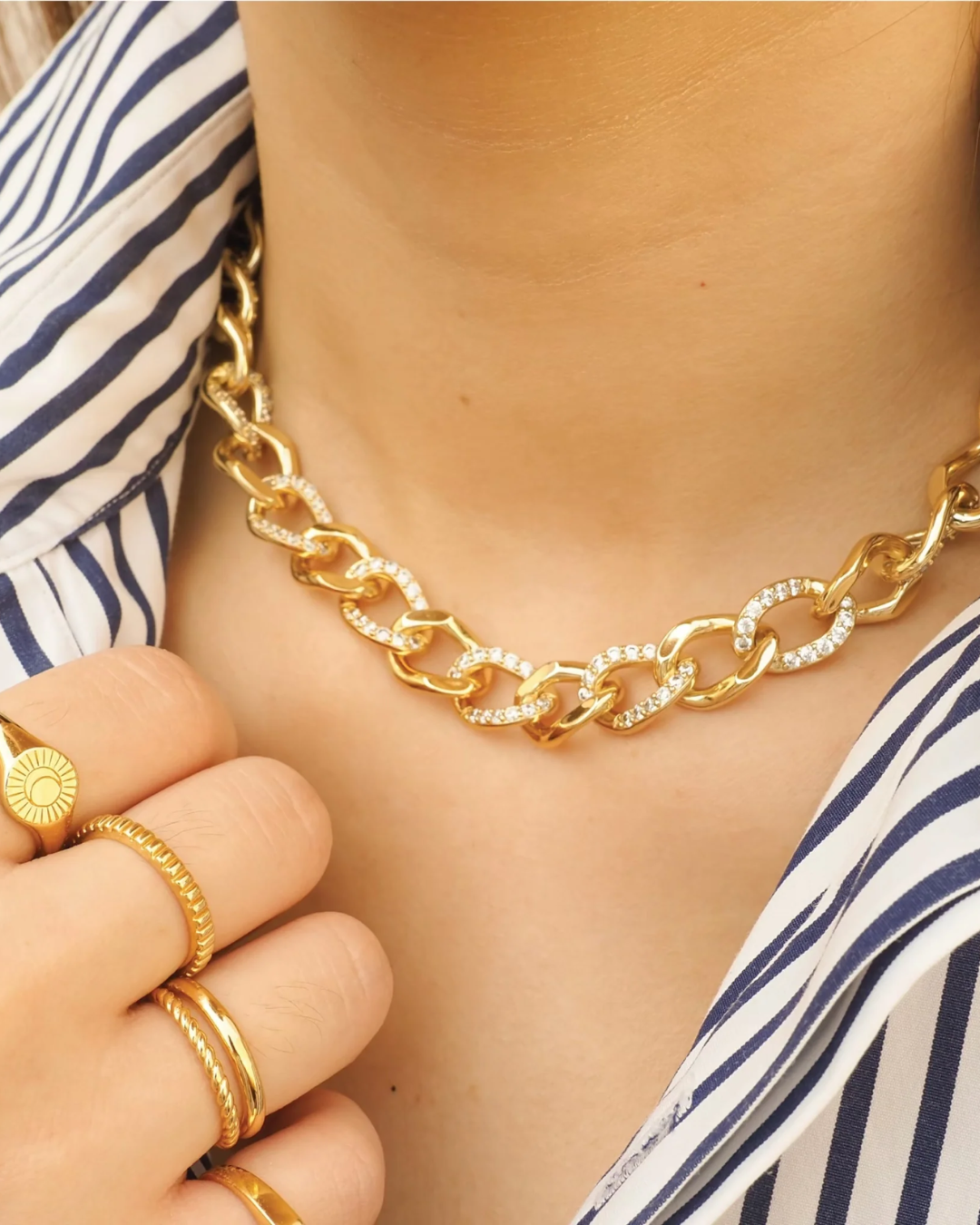 Luxe Elle Crystal Gold Chain Choker Necklace