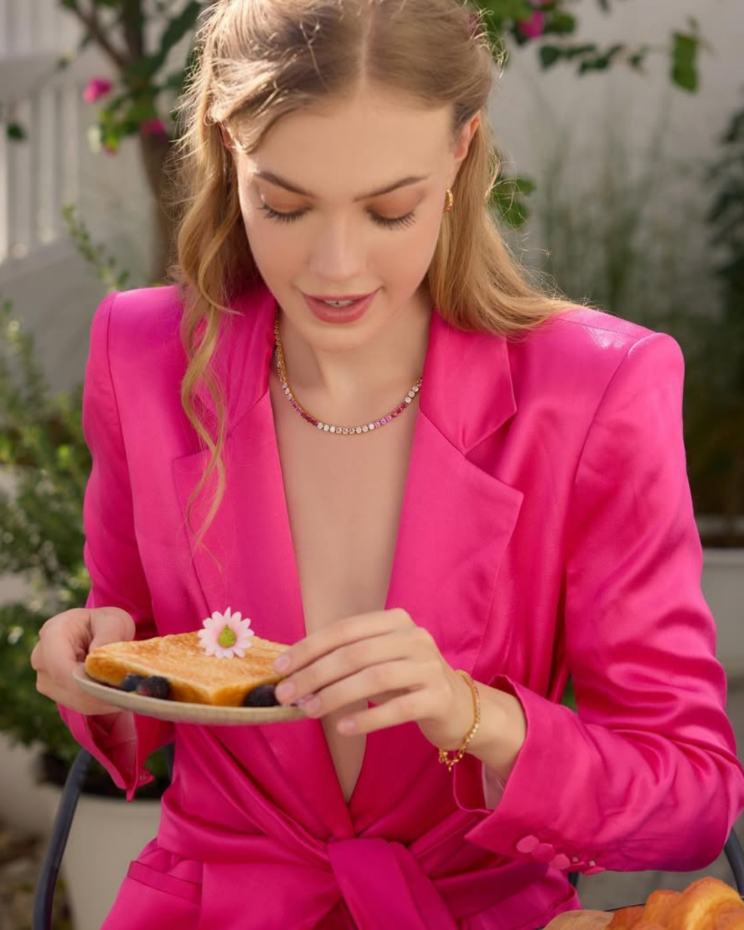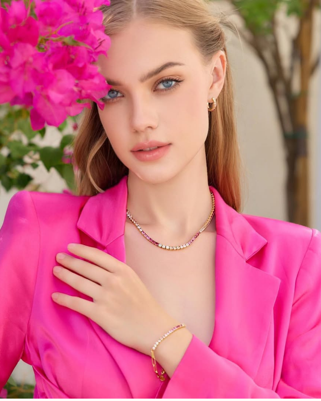 Blush-toned crystals fade from soft pink to rose in this ombré-inspired design. Romantic and feminine, it adds warmth and charm to your everyday look.