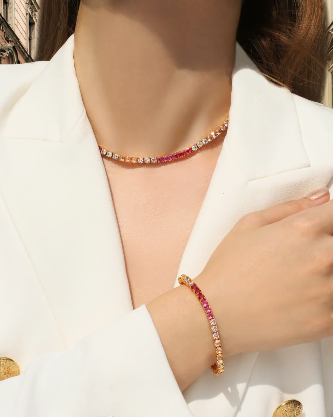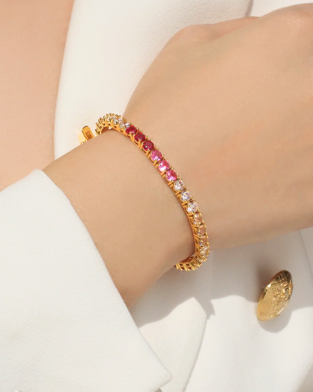 Luxe Tyra Pink Ombre Crystal Gold Chain Bracelet