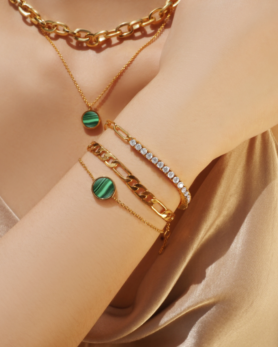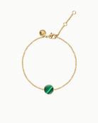 Featuring a malachite coin charm said to attract transformation and balance, this bracelet offers a subtle pop of rich green. Set on a dainty gold chain, it adds both meaning and style to your everyday look.